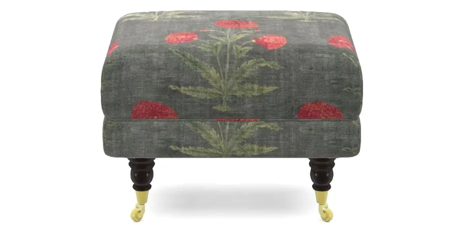 • Alwinton Bespoke Extra Small Footstools in V&A Threads of India Opulent Velvets - Regal Poppy : V&A Threads of India Opulent Velvets - Regal Poppy Pitch