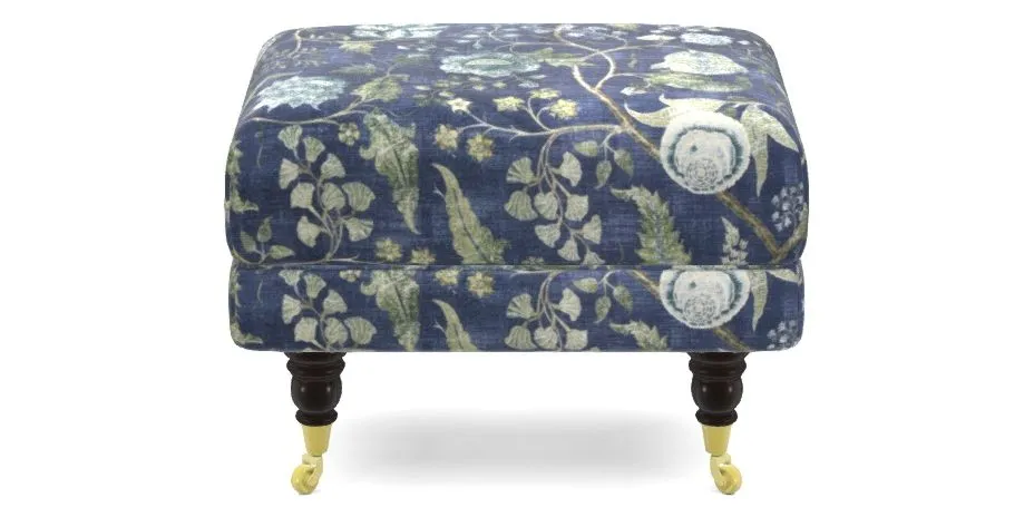 Alwinton Bespoke Extra Small Footstools in V&A Threads of India Opulent Velvets - Tree of Life : Ink