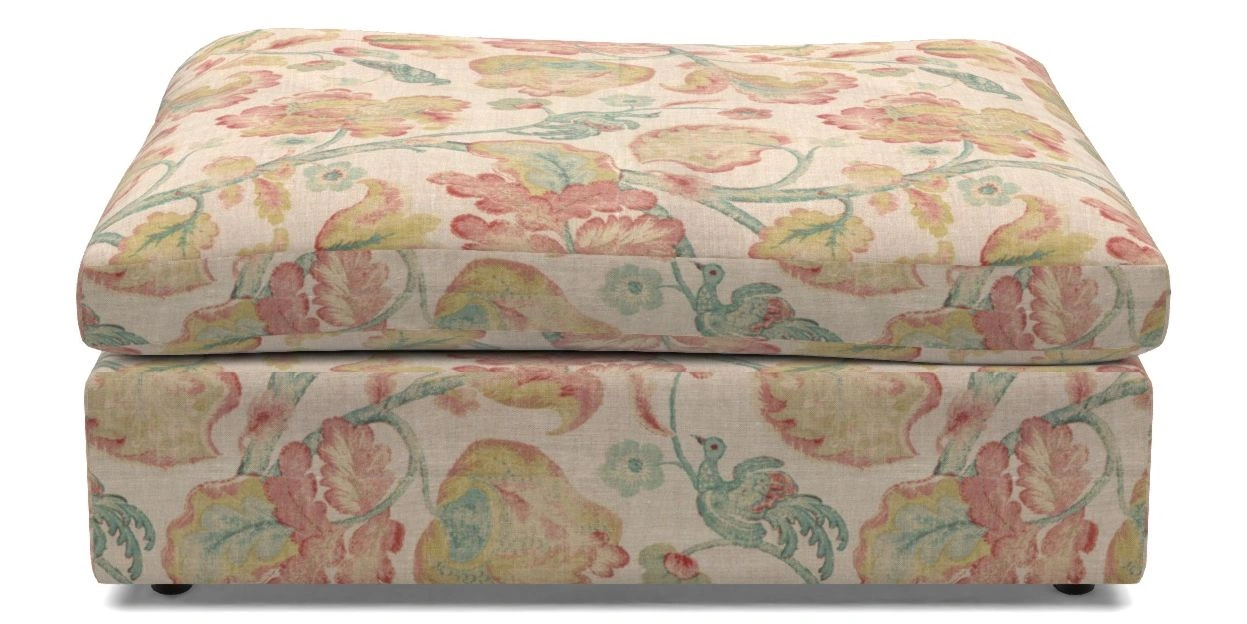 Big Softie Bespoke Standard Footstools in Floral Linen : L Oiseaux Dusk