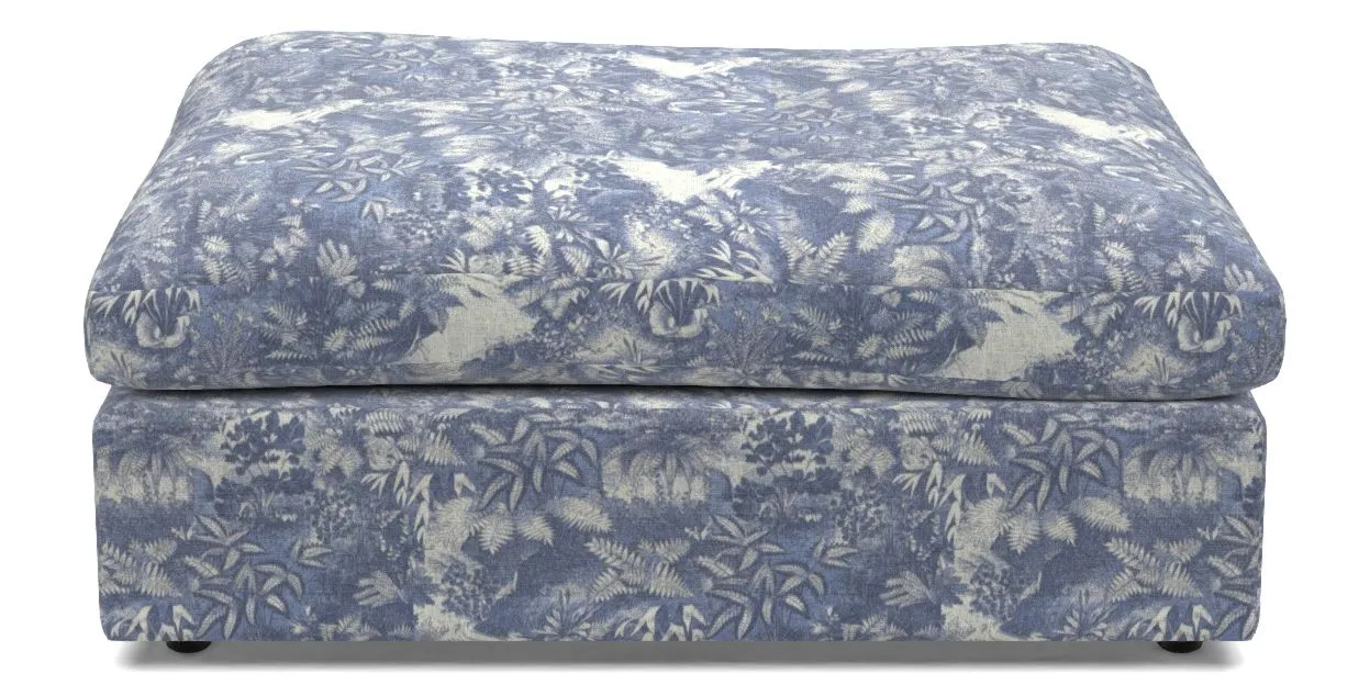 • Big Softie Bespoke Standard Footstools in RHS Botanicals - Ferns Toile : Indigo