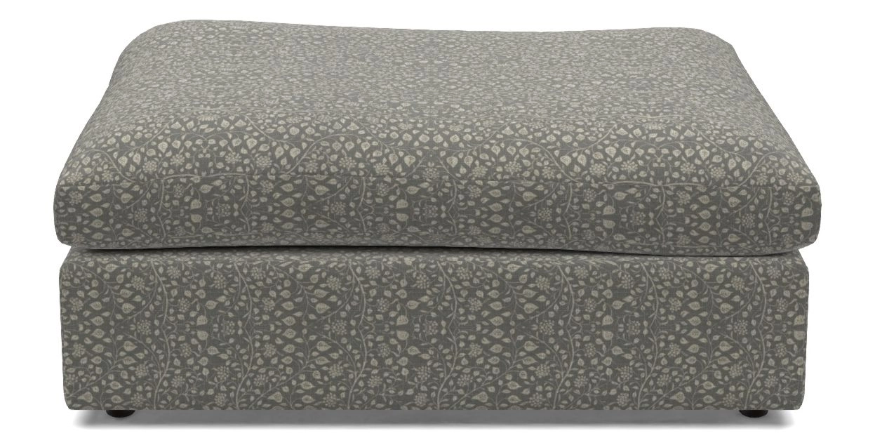A large, cushioned box-shaped stool on dark-stained solid wood glide feet. Comfortable as a footrest and ideal for holding books, magazines, or a tray of tea and treats. View other products in this range.