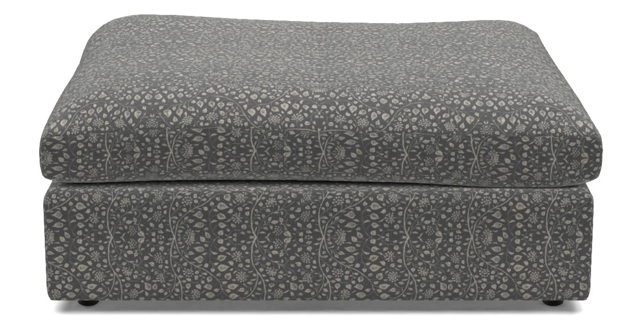 A large, cushioned box-shaped stool on dark-stained solid wood glide feet. Comfortable as a footrest and ideal for holding books, magazines, or a tray of tea and treats. View other products in this range.