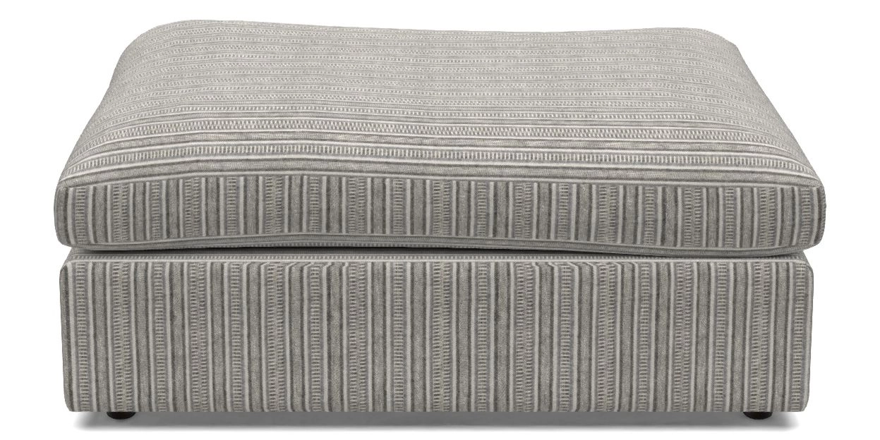 A large, cushioned box-shaped stool on dark-stained solid wood glide feet. Comfortable as a footrest and ideal for holding books, magazines, or a tray of tea and treats. View other products in this range.