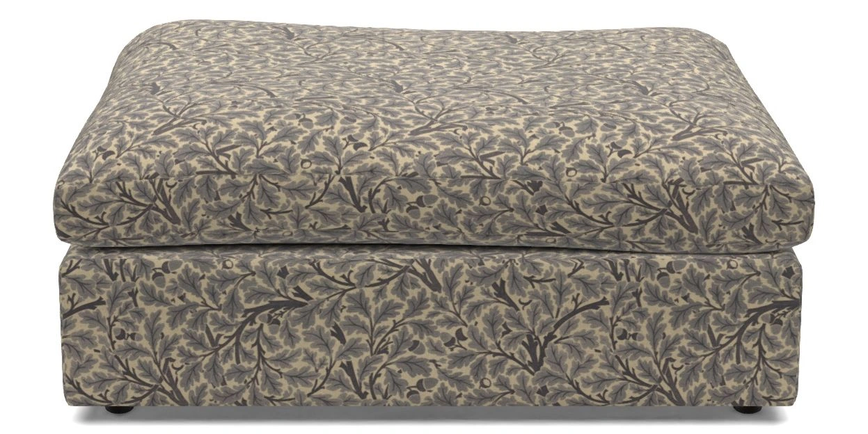 A large, cushioned box-shaped stool on dark-stained solid wood glide feet. Comfortable as a footrest and ideal for holding books, magazines, or a tray of tea and treats. View other products in this range.