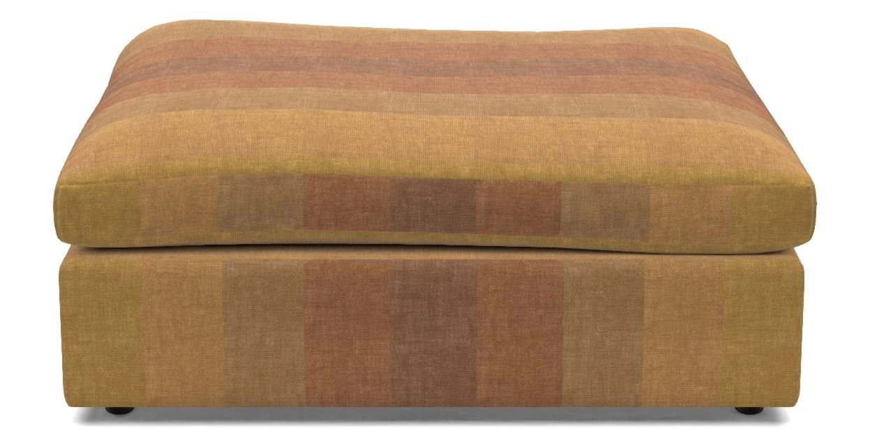 A large, cushioned box-shaped stool on dark-stained solid wood glide feet. Comfortable as a footrest and ideal for holding books, magazines, or a tray of tea and treats. View other products in this range.