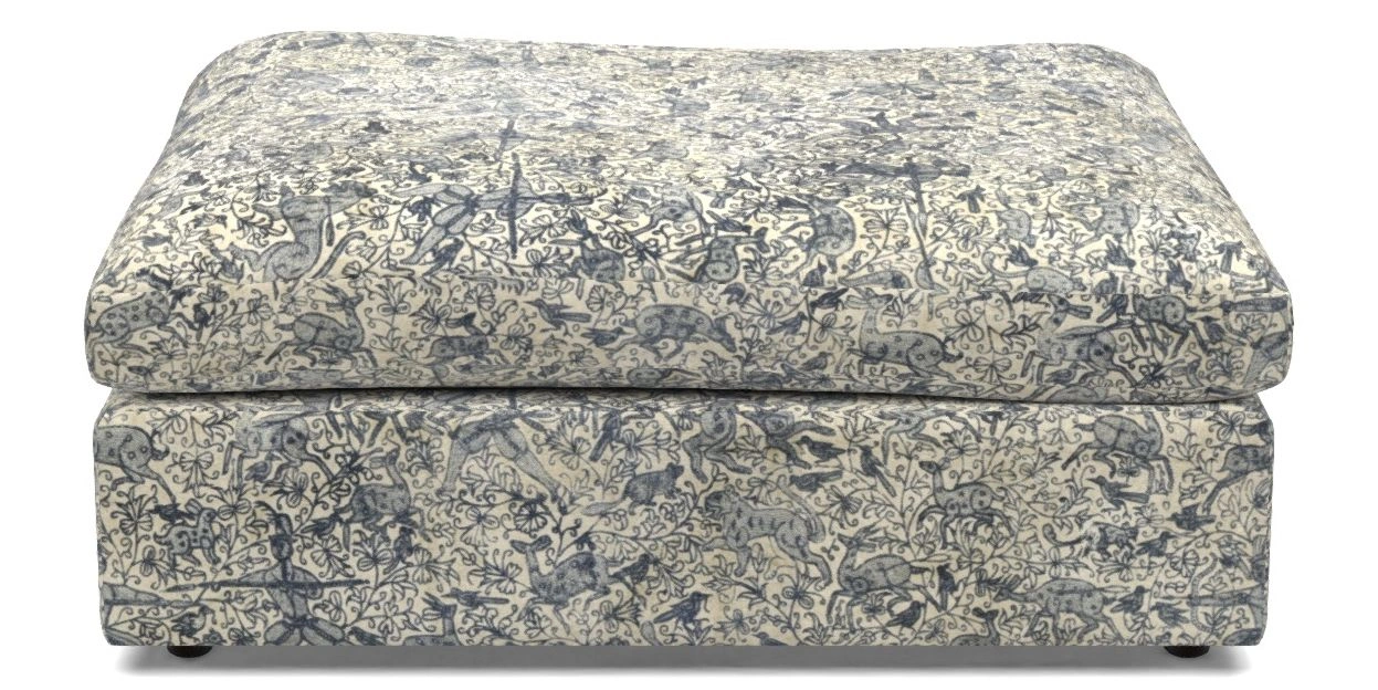 • Big Softie Bespoke Standard Footstools in V&A Threads of India Opulent Velvets - Forest Creatures : V&A Threads of India Opulent Velvets - Forest Creatures Ink