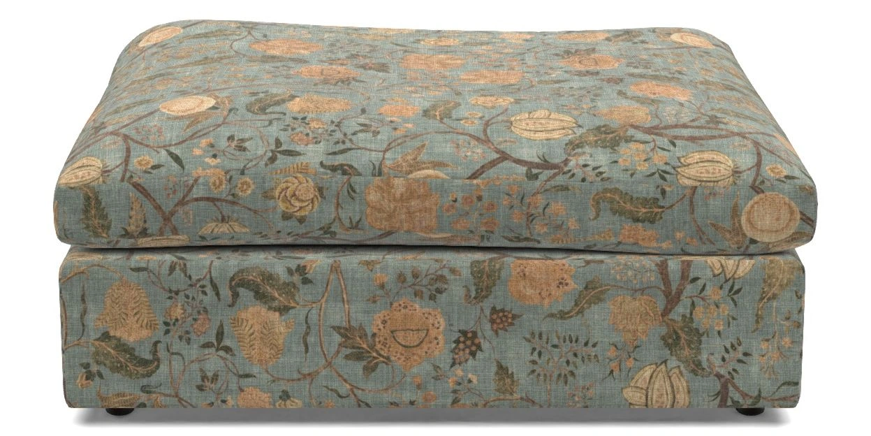 • Big Softie Bespoke Standard Footstools in V&A Threads of India on Linen - Tree of Life : V&A Threads of India on Linen - Tree of Life Mineral Blue