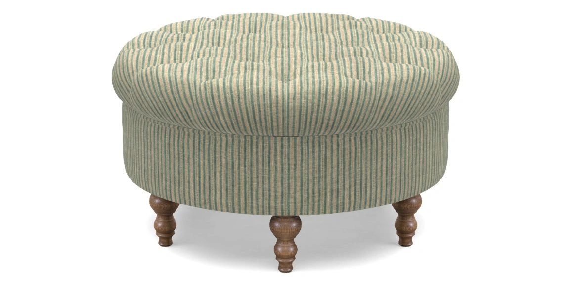 • Burford Bespoke Round Footstools in Sussex Stripe : Sea Mist