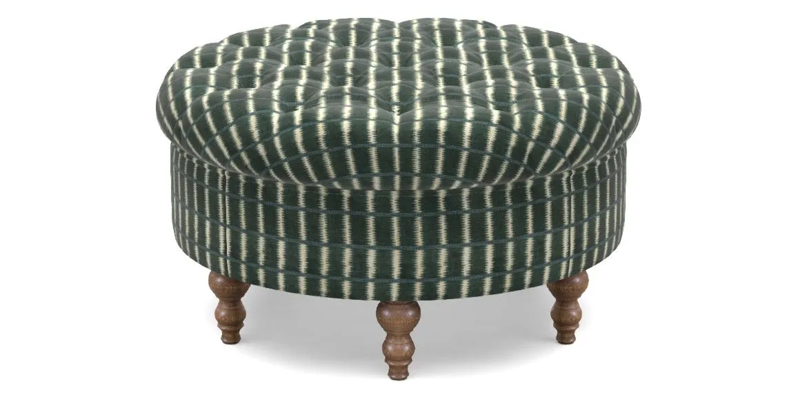 • Burford Bespoke Round Footstools in V&A Threads of India Opulent Velvets - Ikat Mirage : Hunter