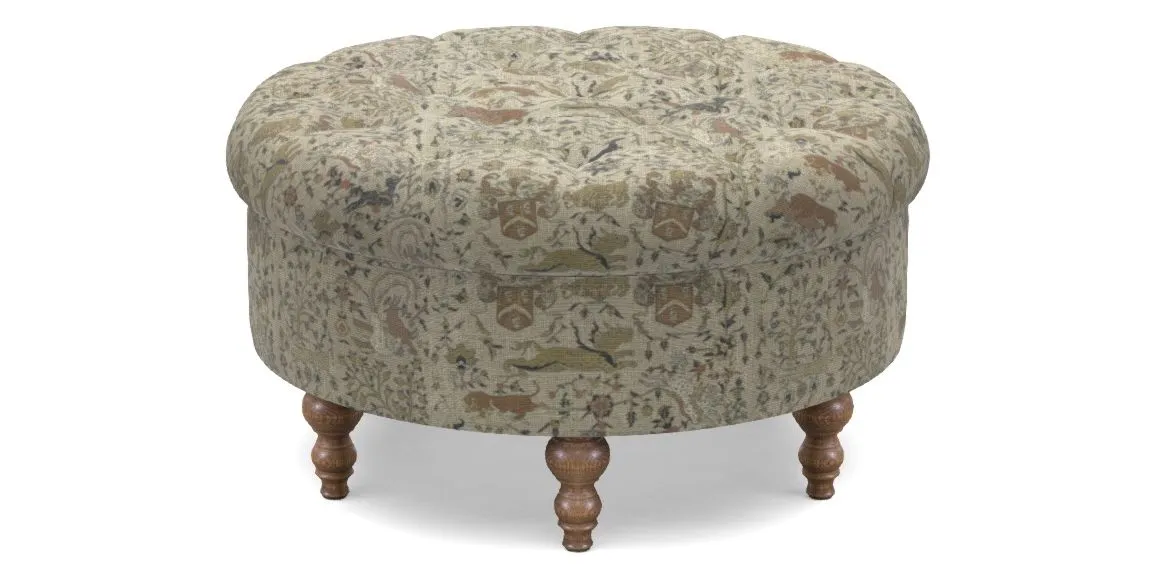 Burford Bespoke Round Footstools in V&A Threads of India - Lahore Dynasty : Linen