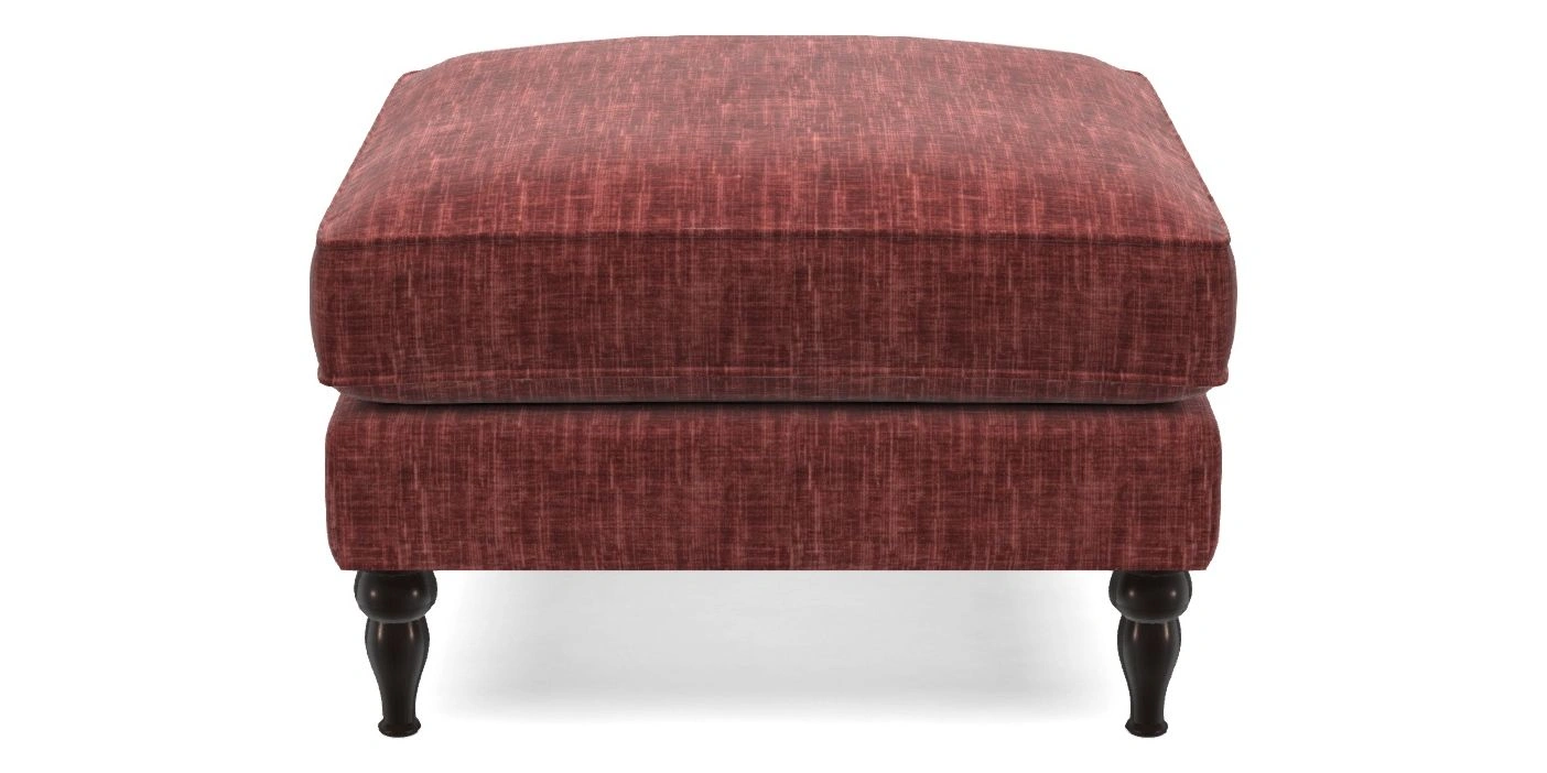A square, deeply padded footstool with turned legs and castors, offering classic style with practicality. View other products in this range.