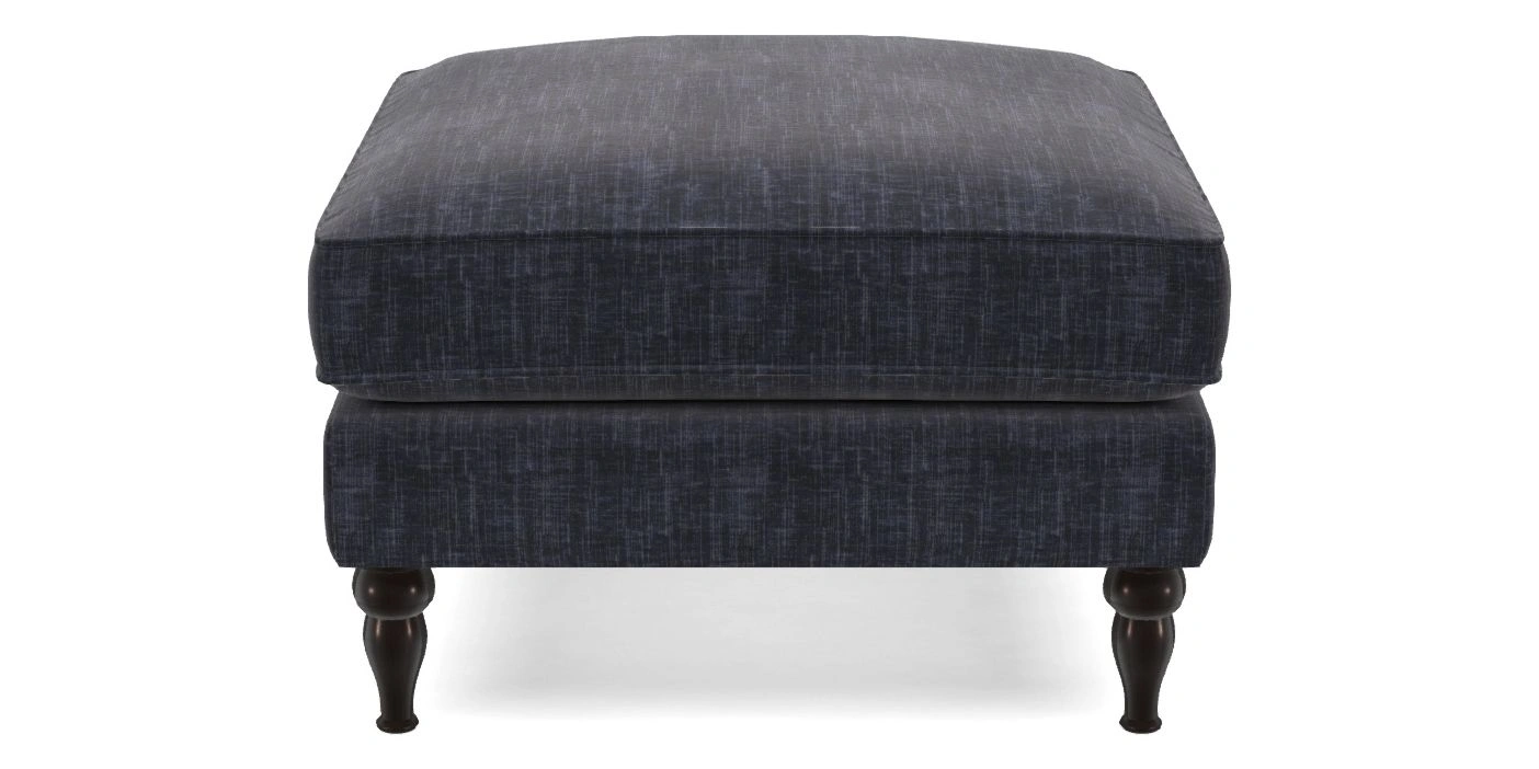 A square, deeply padded footstool with turned legs and castors, offering classic style with practicality. View other products in this range.