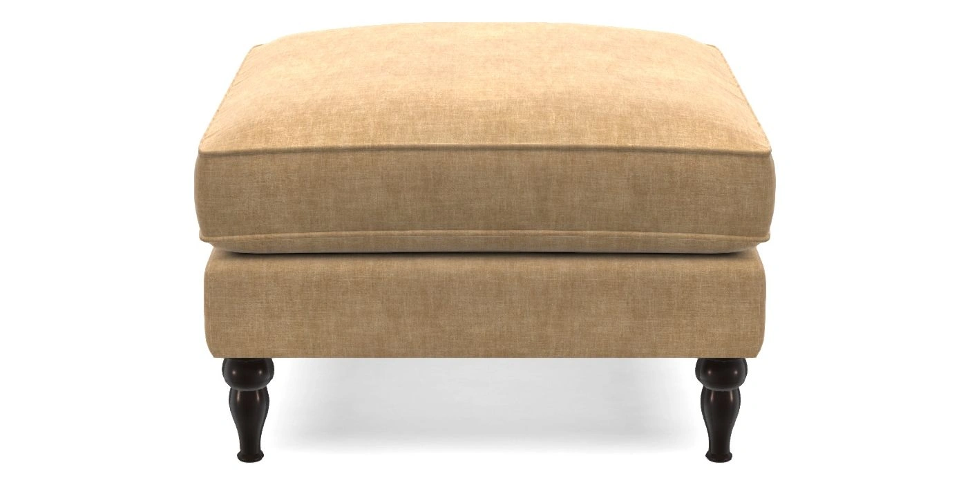 A square, deeply padded footstool with turned legs and castors, offering classic style with practicality. View other products in this range.