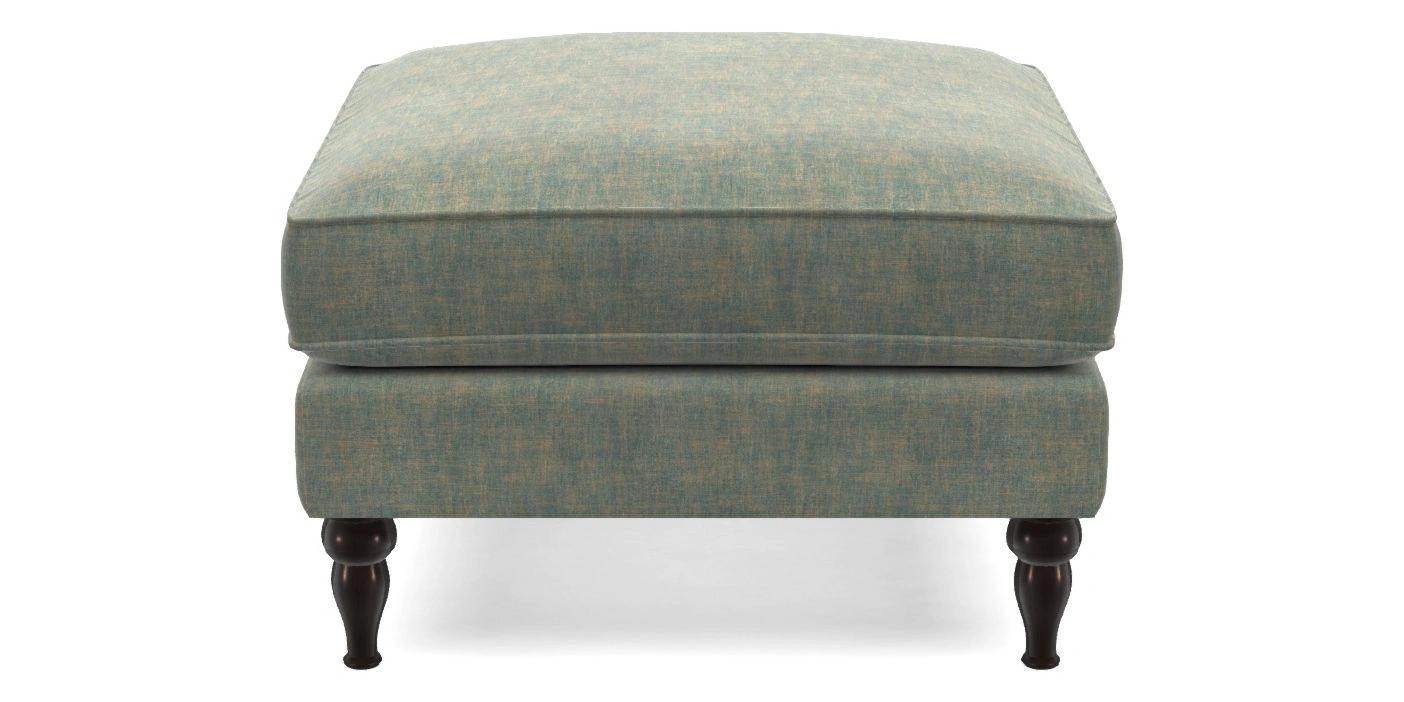 A square, deeply padded footstool with turned legs and castors, offering classic style with practicality. View other products in this range.