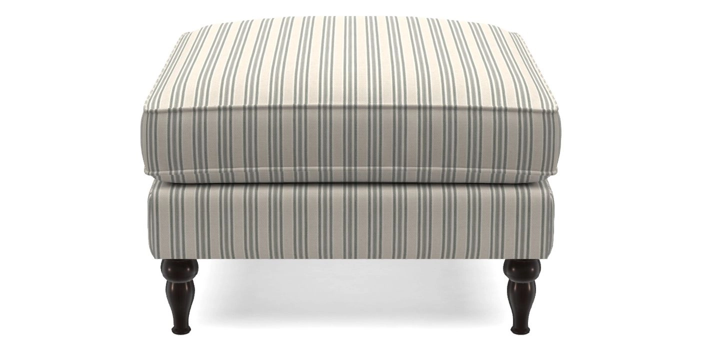 A square, deeply padded footstool with turned legs and castors, offering classic style with practicality. View other products in this range.