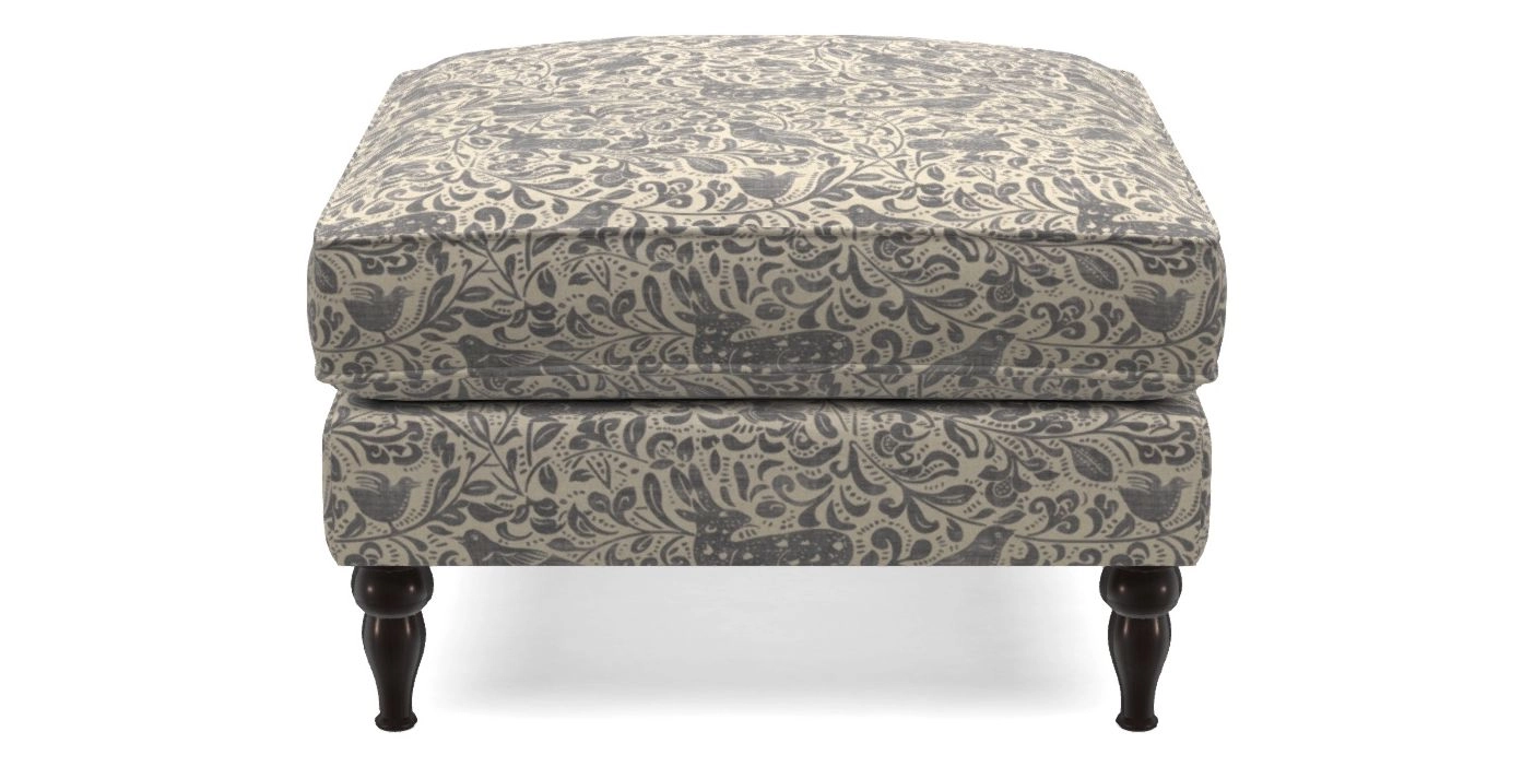 A square, deeply padded footstool with turned legs and castors, offering classic style with practicality. View other products in this range.