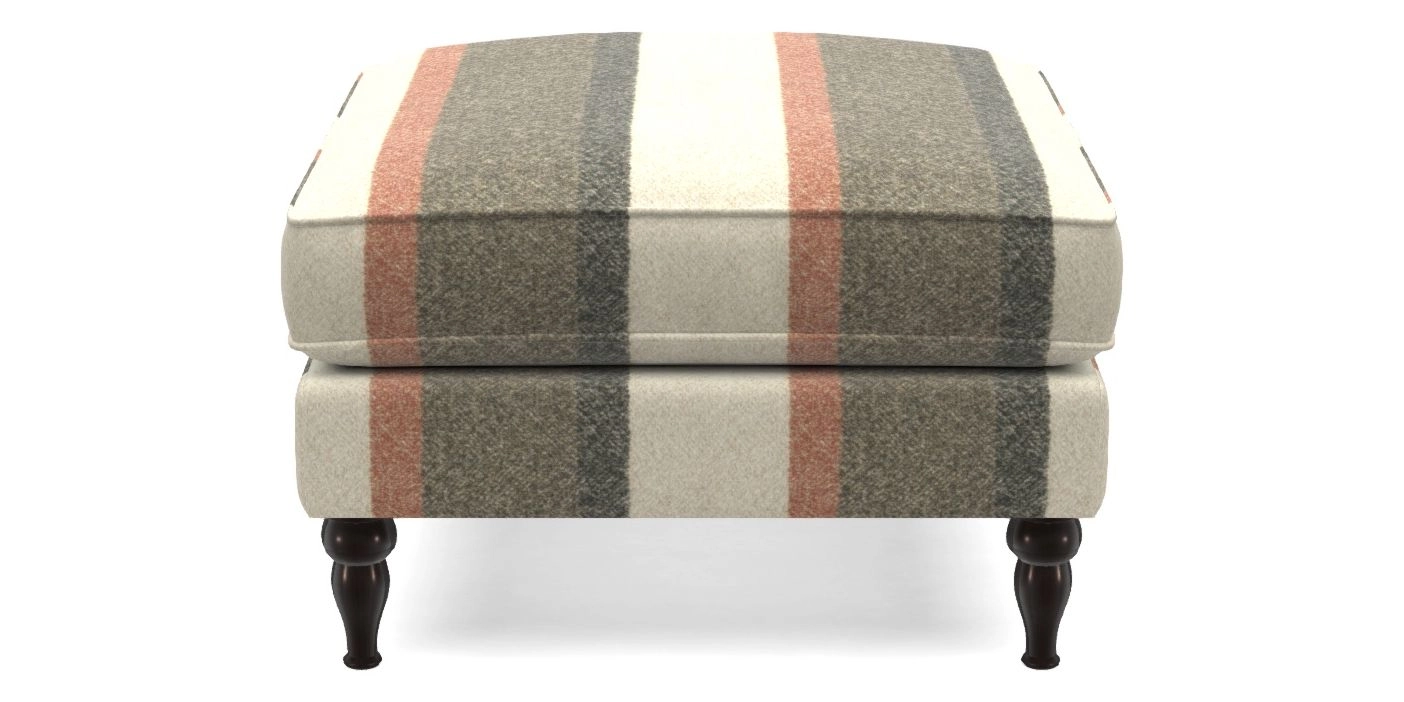 A square, deeply padded footstool with turned legs and castors, offering classic style with practicality. View other products in this range.