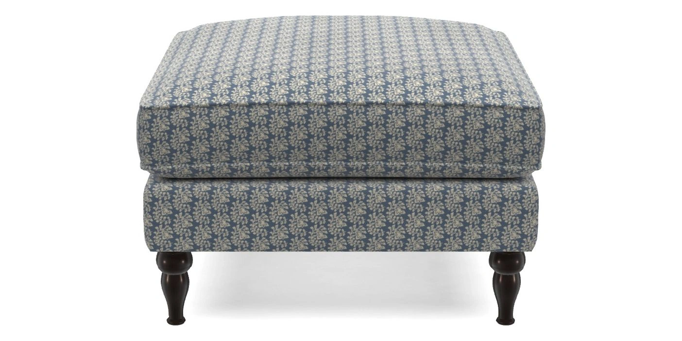 A square, deeply padded footstool with turned legs and castors, offering classic style with practicality. View other products in this range.