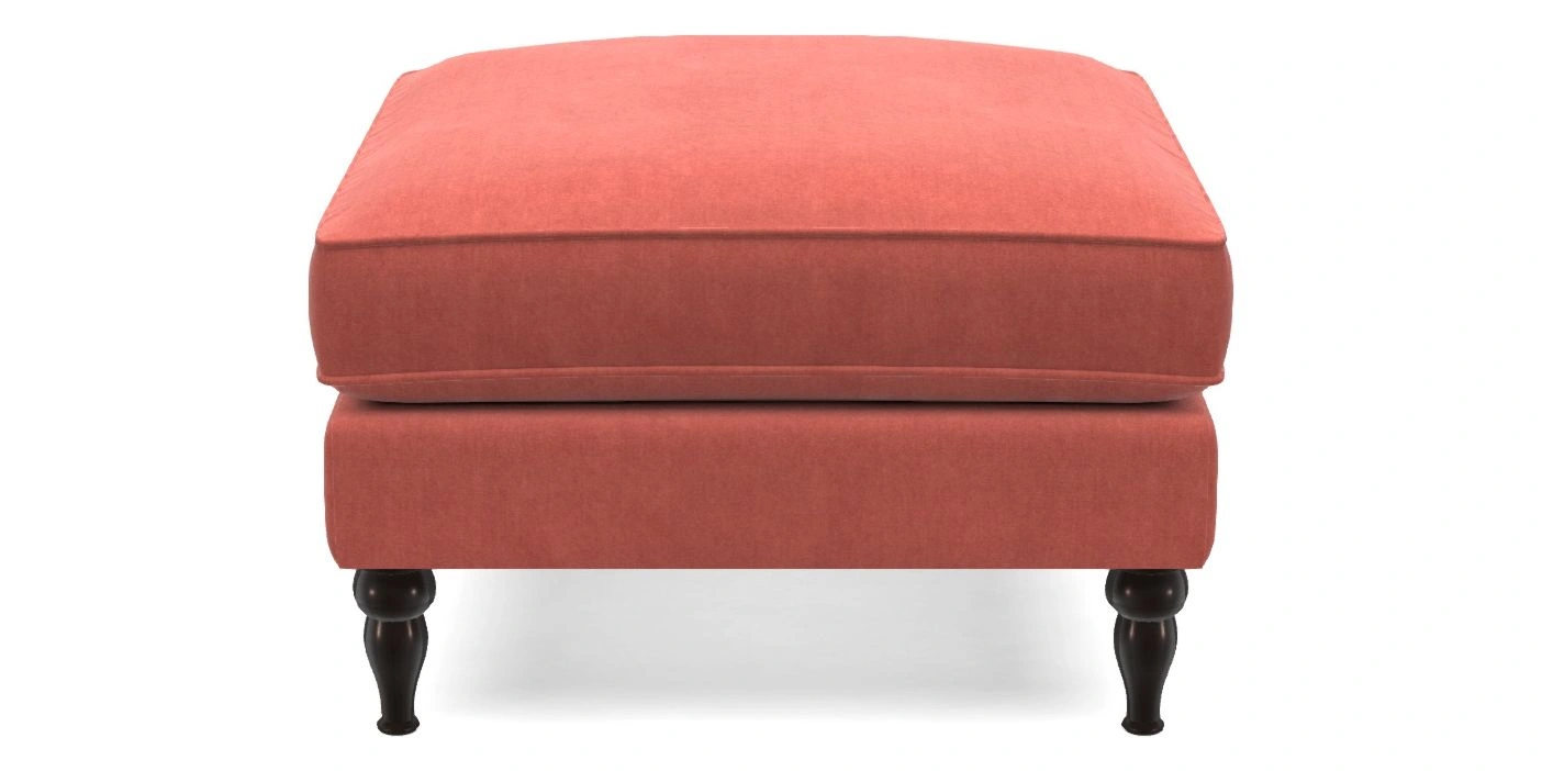 A square, deeply padded footstool with turned legs and castors, offering classic style with practicality. View other products in this range.