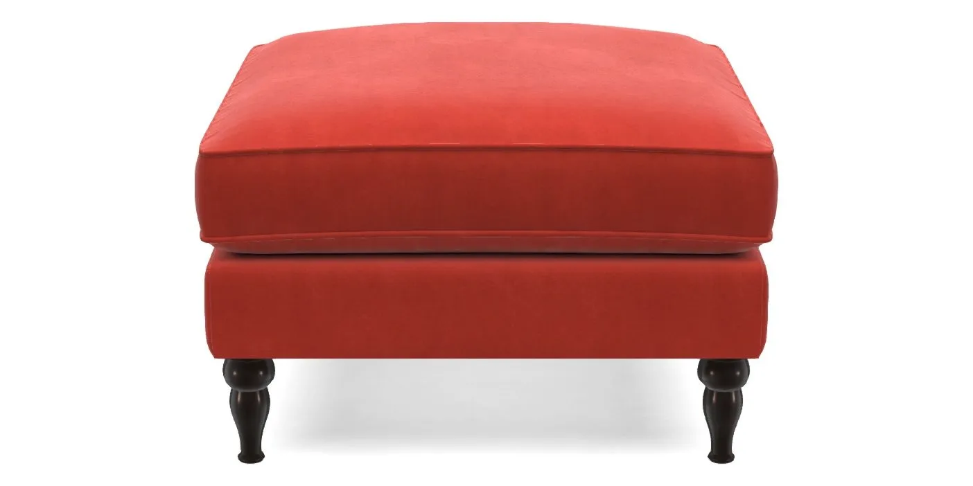 A square, deeply padded footstool with turned legs and castors, offering classic style with practicality. View other products in this range.