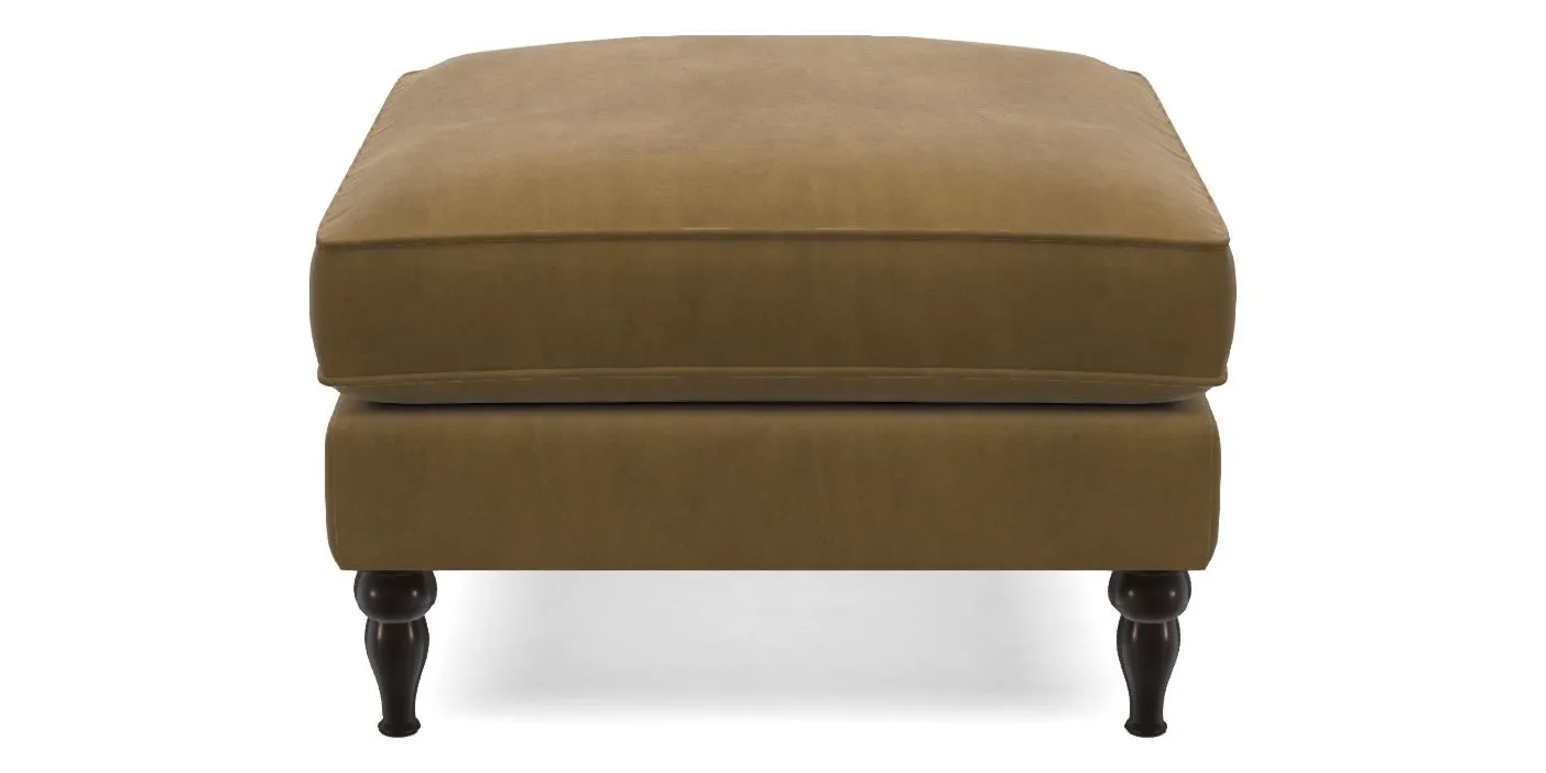 A square, deeply padded footstool with turned legs and castors, offering classic style with practicality. View other products in this range.