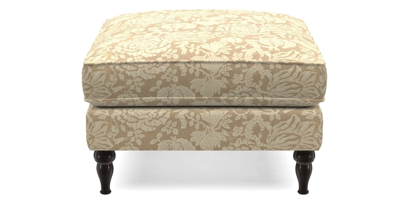 A square, deeply padded footstool with turned legs and castors, offering classic style with practicality. View other products in this range.
