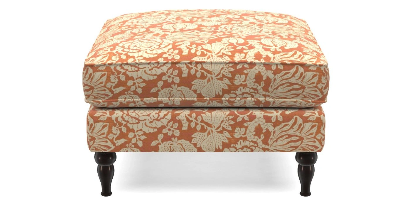 A square, deeply padded footstool with turned legs and castors, offering classic style with practicality. View other products in this range.