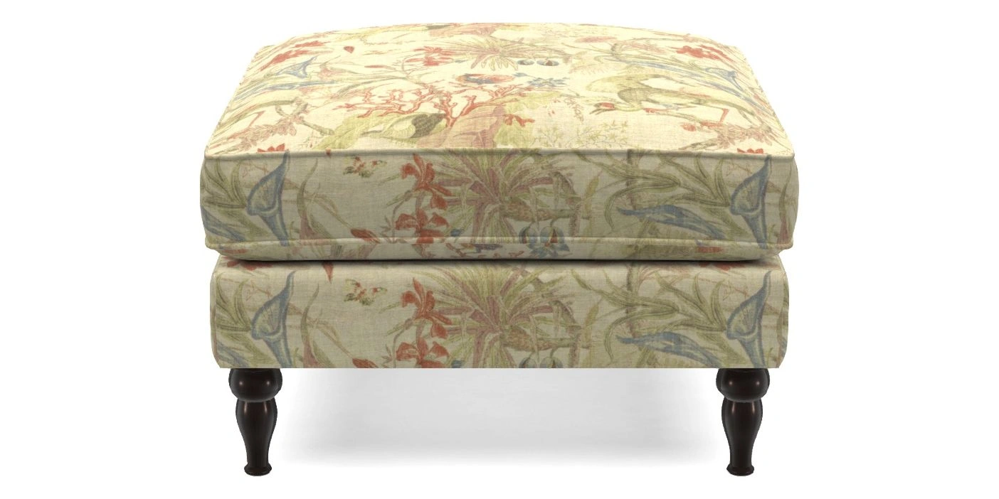 Cooksbridge Bespoke Standard Footstools in Floral Linen : Lily Pad Vermillion