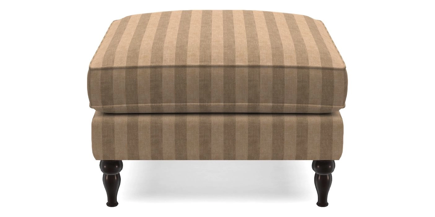 A square, deeply padded footstool with turned legs and castors, offering classic style with practicality. View other products in this range.