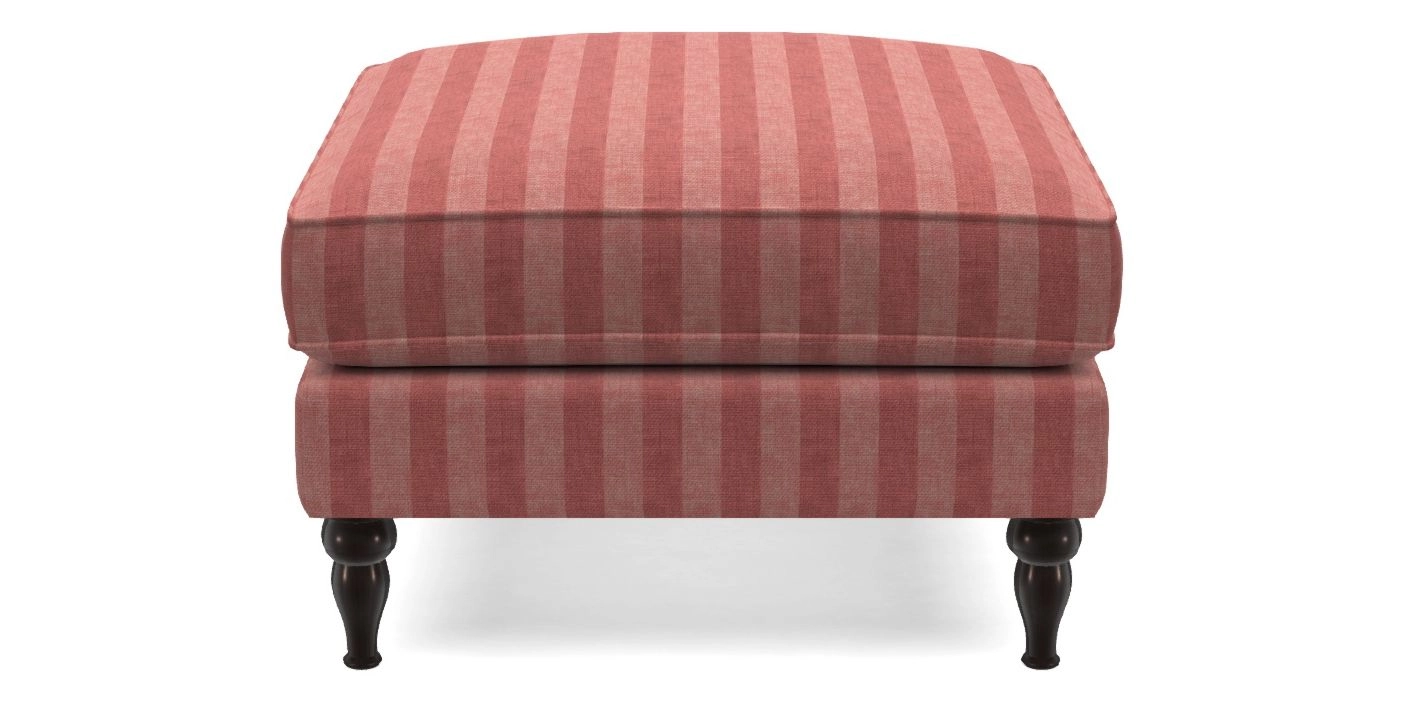 A square, deeply padded footstool with turned legs and castors, offering classic style with practicality. View other products in this range.