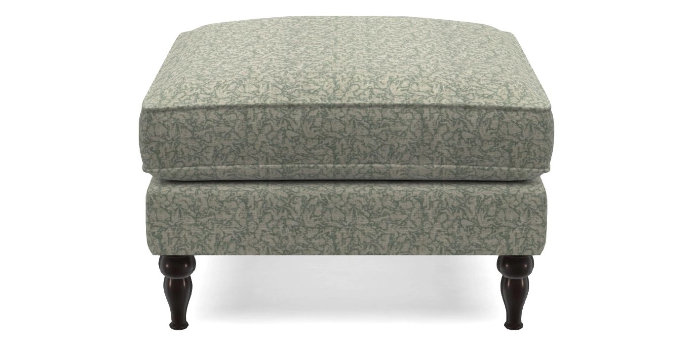 A square, deeply padded footstool with turned legs and castors, offering classic style with practicality. View other products in this range.