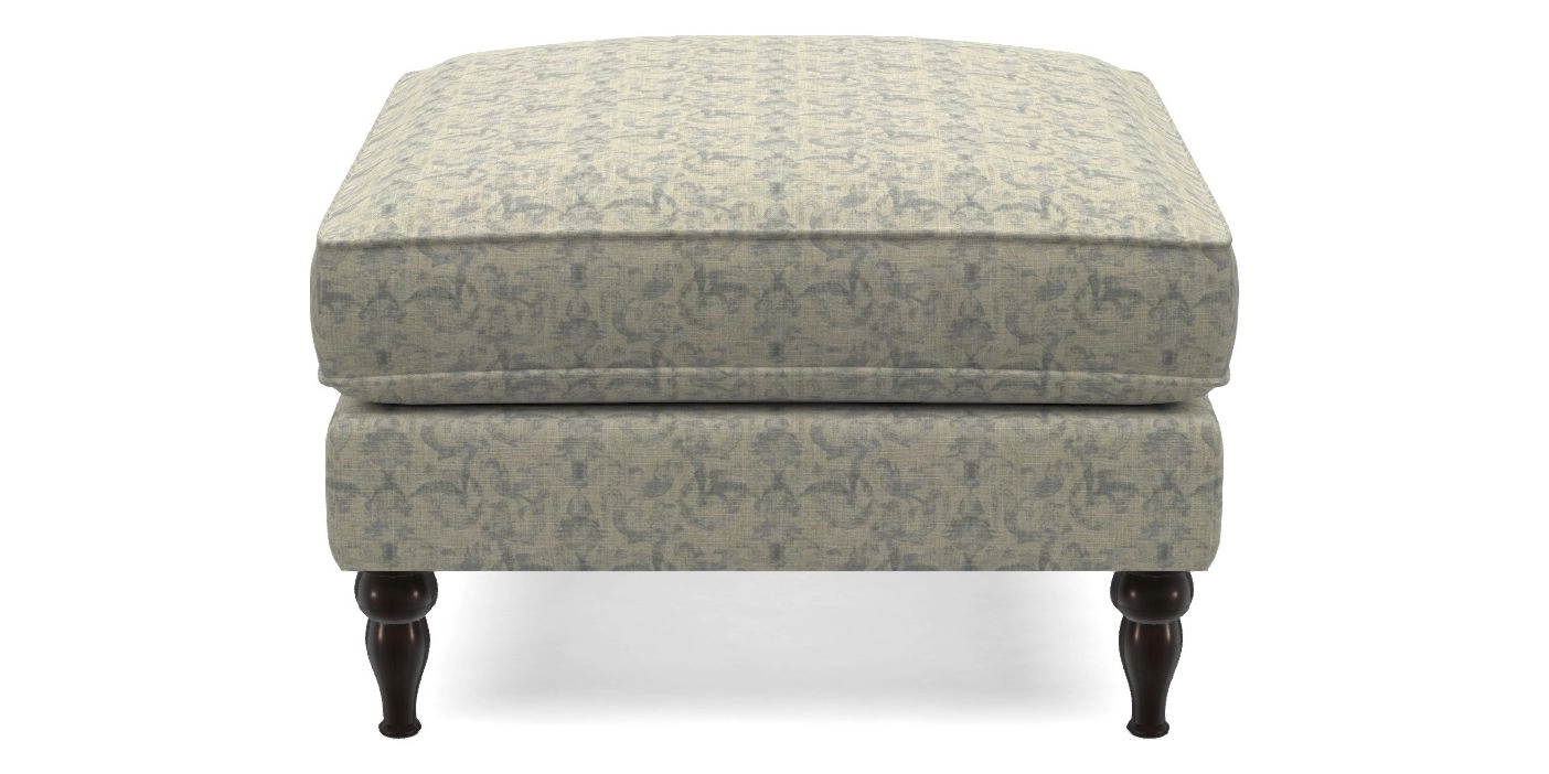 A square, deeply padded footstool with turned legs and castors, offering classic style with practicality. View other products in this range.