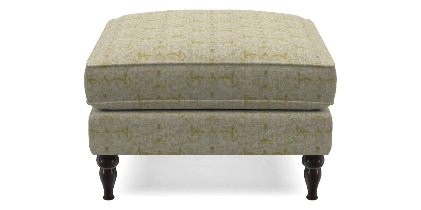 A square, deeply padded footstool with turned legs and castors, offering classic style with practicality. View other products in this range.
