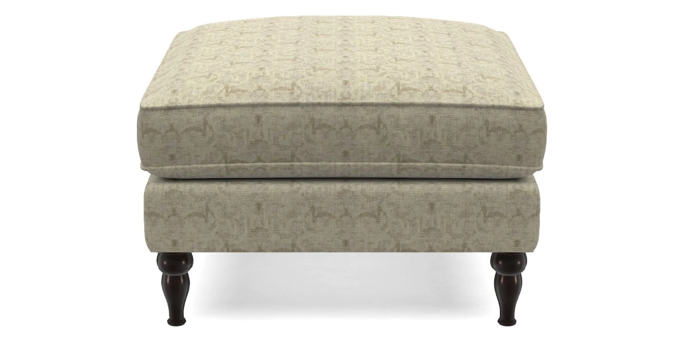 A square, deeply padded footstool with turned legs and castors, offering classic style with practicality. View other products in this range.