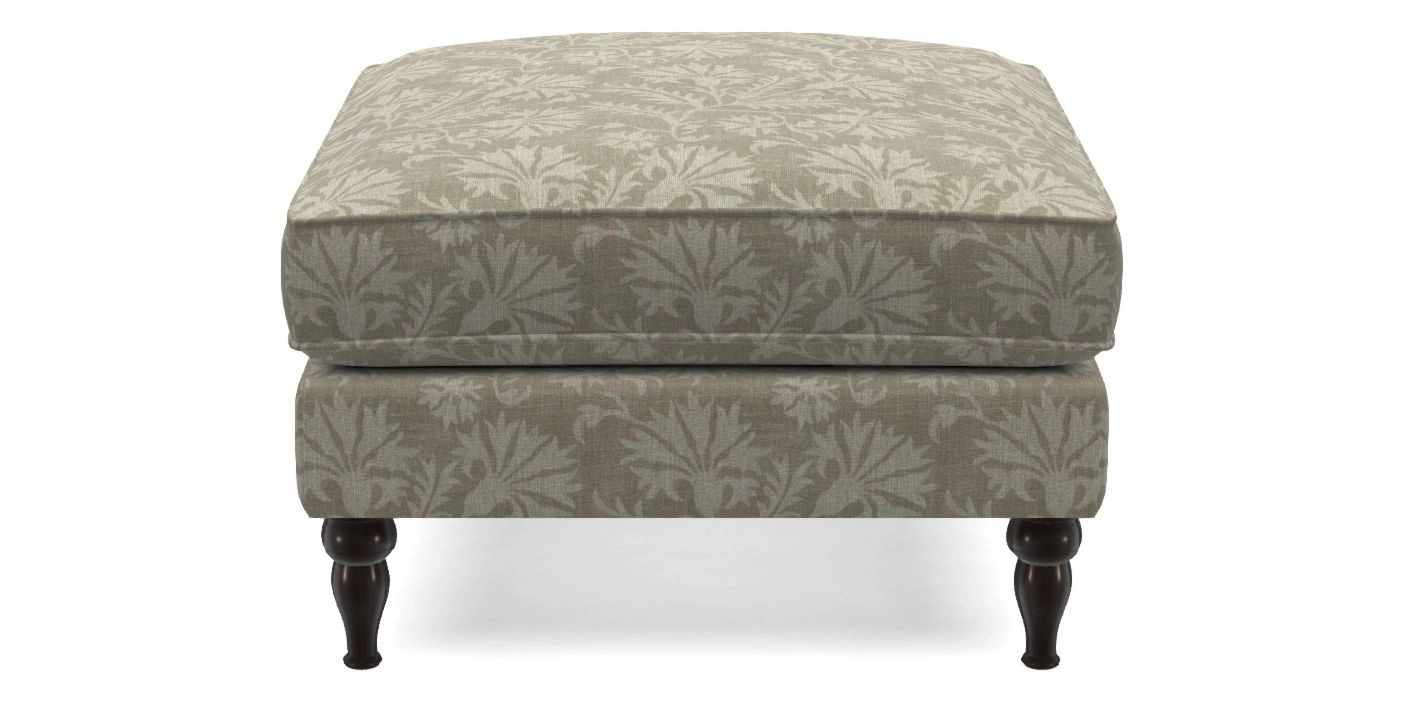 A square, deeply padded footstool with turned legs and castors, offering classic style with practicality. View other products in this range.