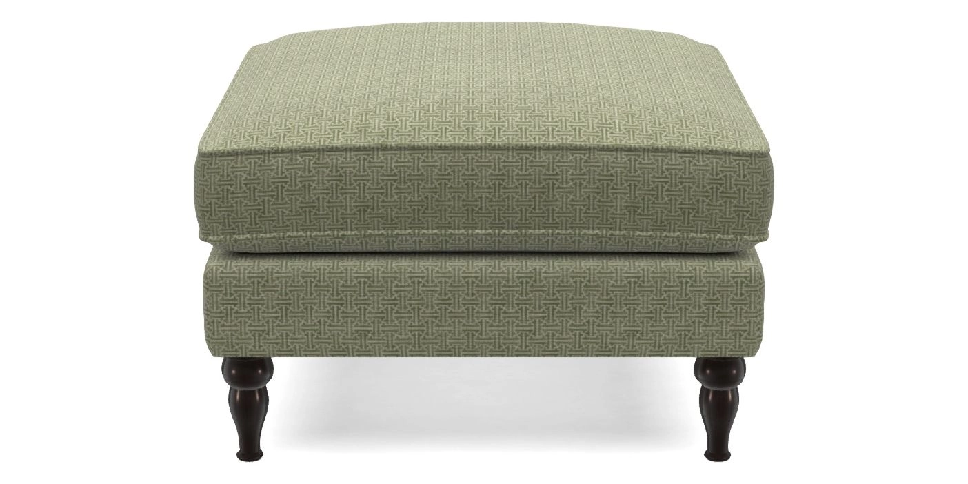 A square, deeply padded footstool with turned legs and castors, offering classic style with practicality. View other products in this range.
