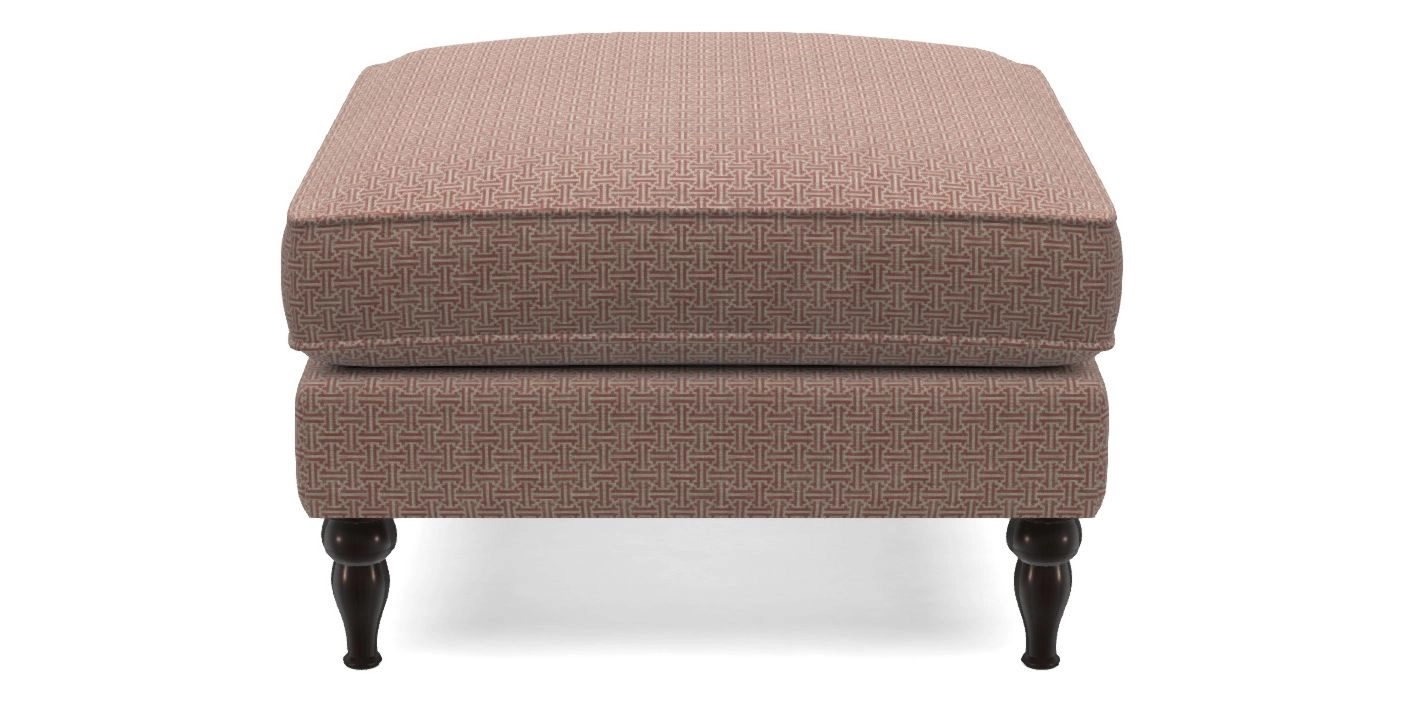 A square, deeply padded footstool with turned legs and castors, offering classic style with practicality. View other products in this range.