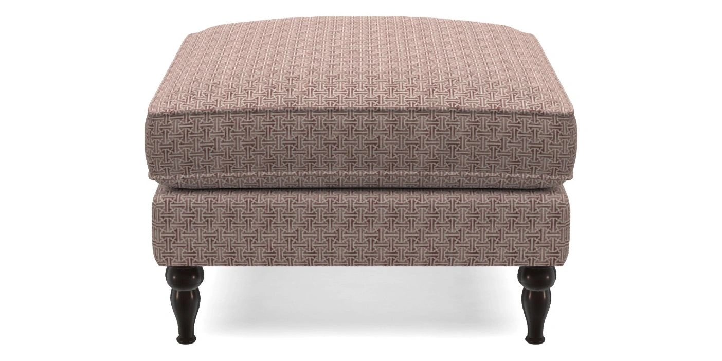 A square, deeply padded footstool with turned legs and castors, offering classic style with practicality. View other products in this range.