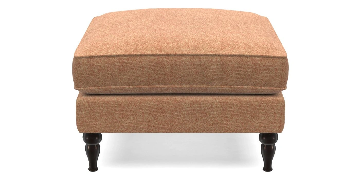 A square, deeply padded footstool with turned legs and castors, offering classic style with practicality. View other products in this range.