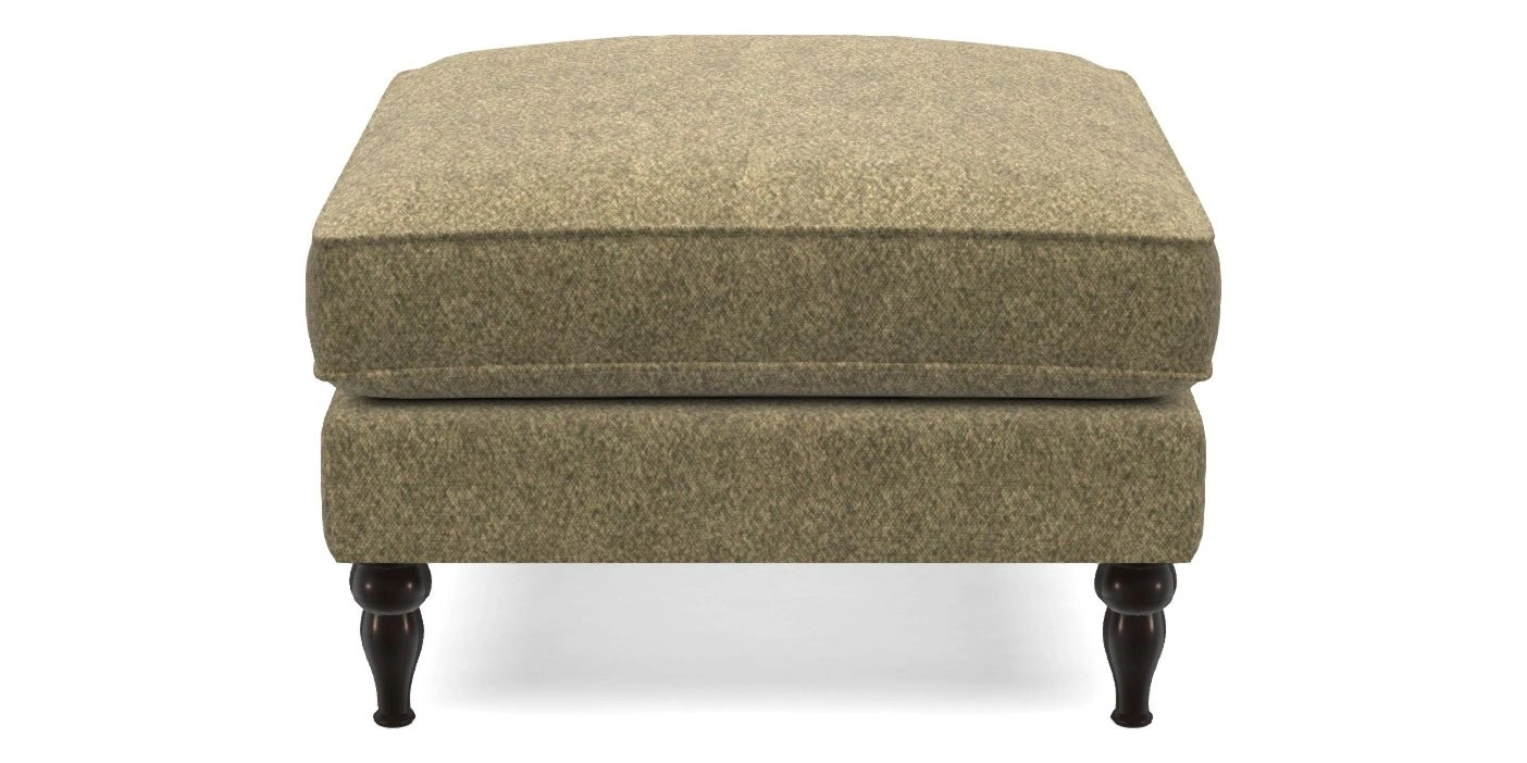 A square, deeply padded footstool with turned legs and castors, offering classic style with practicality. View other products in this range.