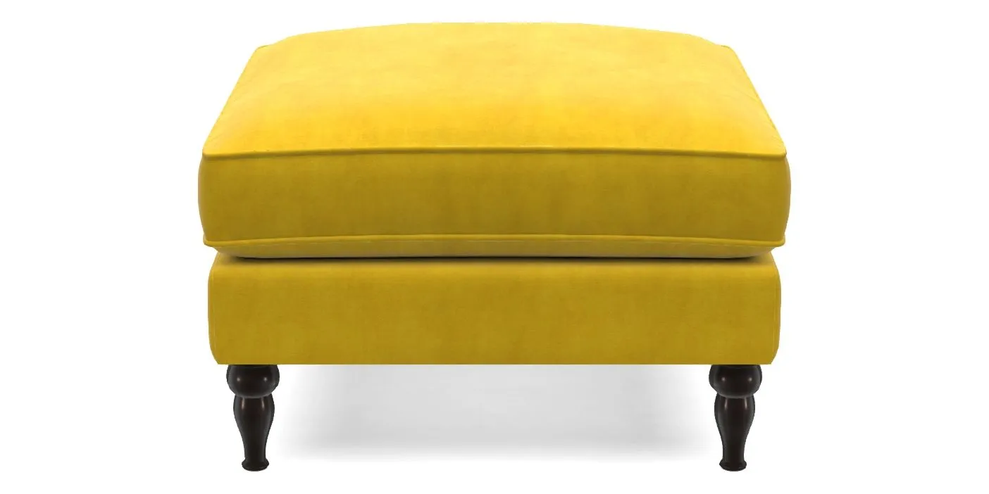 A square, deeply padded footstool with turned legs and castors, offering classic style with practicality. View other products in this range.
