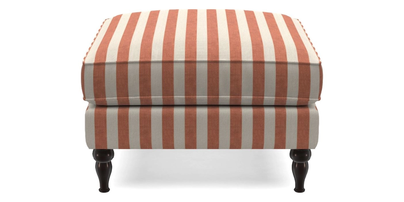 A square, deeply padded footstool with turned legs and castors, offering classic style with practicality. View other products in this range.