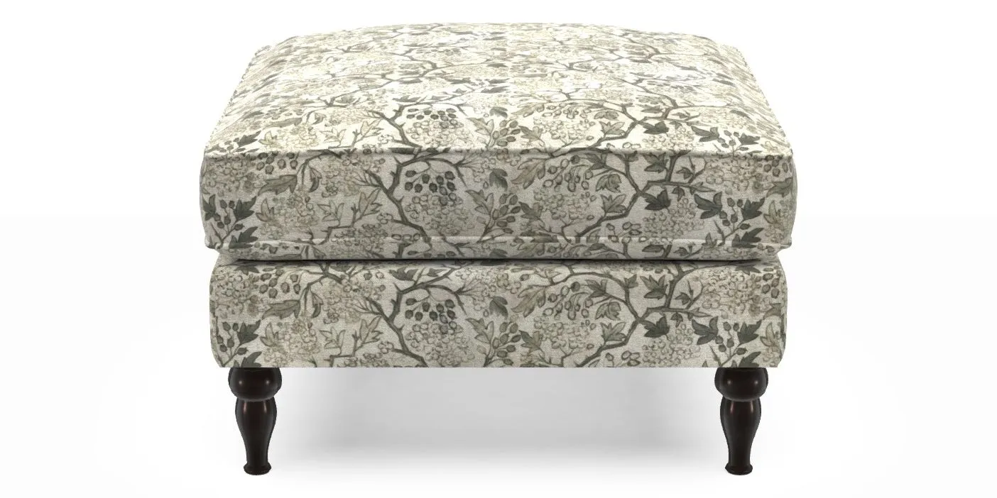 A square, deeply padded footstool with turned legs and castors, offering classic style with practicality. View other products in this range.