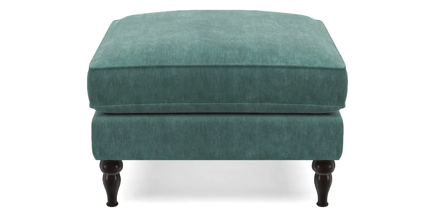A square, deeply padded footstool with turned legs and castors, offering classic style with practicality. View other products in this range.