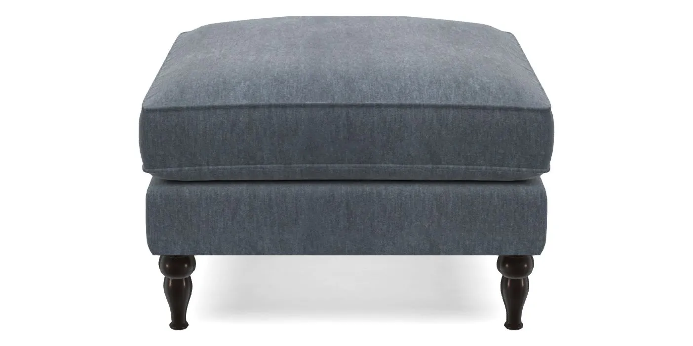 A square, deeply padded footstool with turned legs and castors, offering classic style with practicality. View other products in this range.