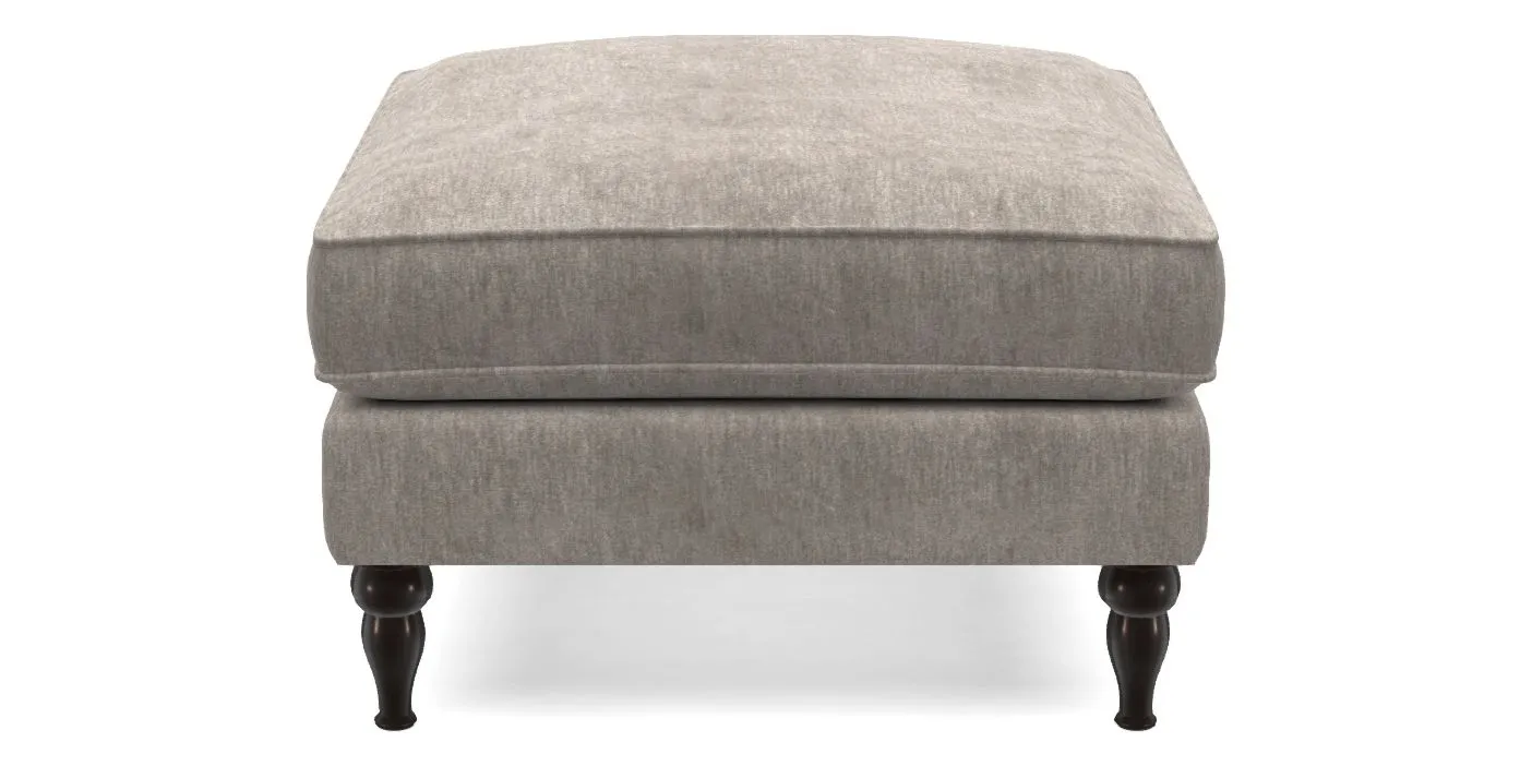 A square, deeply padded footstool with turned legs and castors, offering classic style with practicality. View other products in this range.