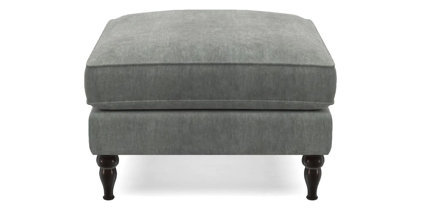A square, deeply padded footstool with turned legs and castors, offering classic style with practicality. View other products in this range.