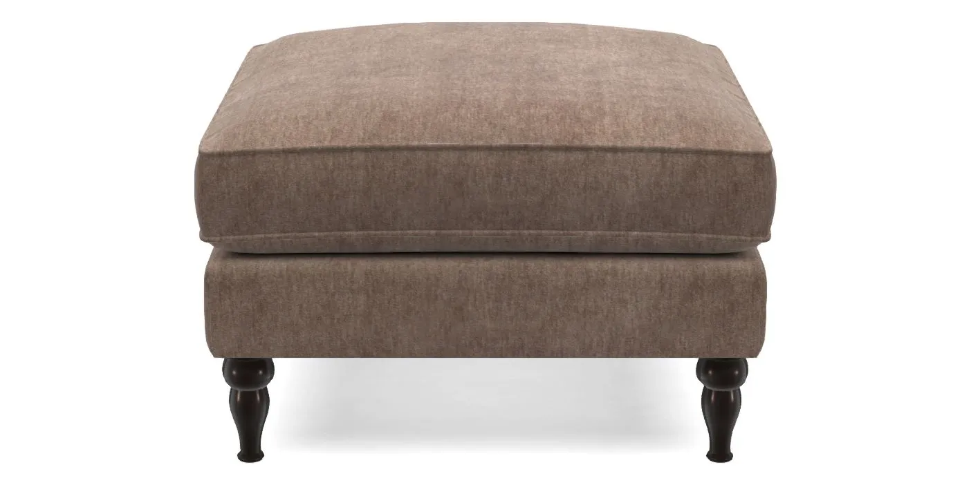 A square, deeply padded footstool with turned legs and castors, offering classic style with practicality. View other products in this range.