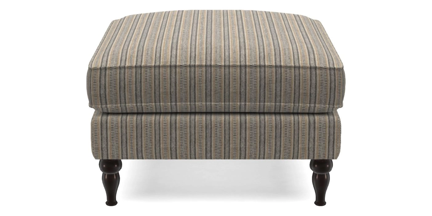A square, deeply padded footstool with turned legs and castors, offering classic style with practicality. View other products in this range.