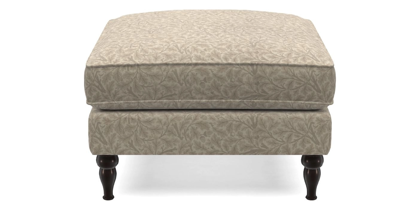 A square, deeply padded footstool with turned legs and castors, offering classic style with practicality. View other products in this range.